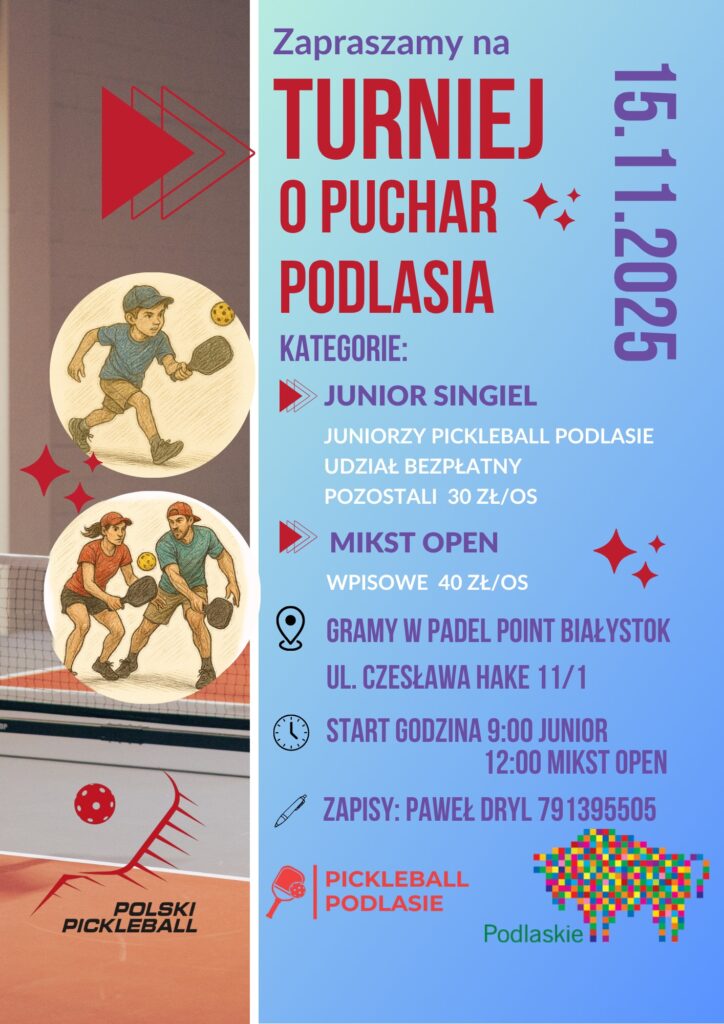 Dzięki wsparciu Województwa Podlaskiego możemy zorganizować to wydarzenie, które promuje aktywność fizyczną, zdrowy styl życia i integrację osób grających w Pickleball.